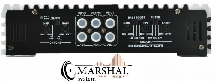 آمپلی فایر قدرتمند از برند بوستر دارای مشخصات 400 وات و این محصول یک امپلی فایر 4 کانال میباشد.
