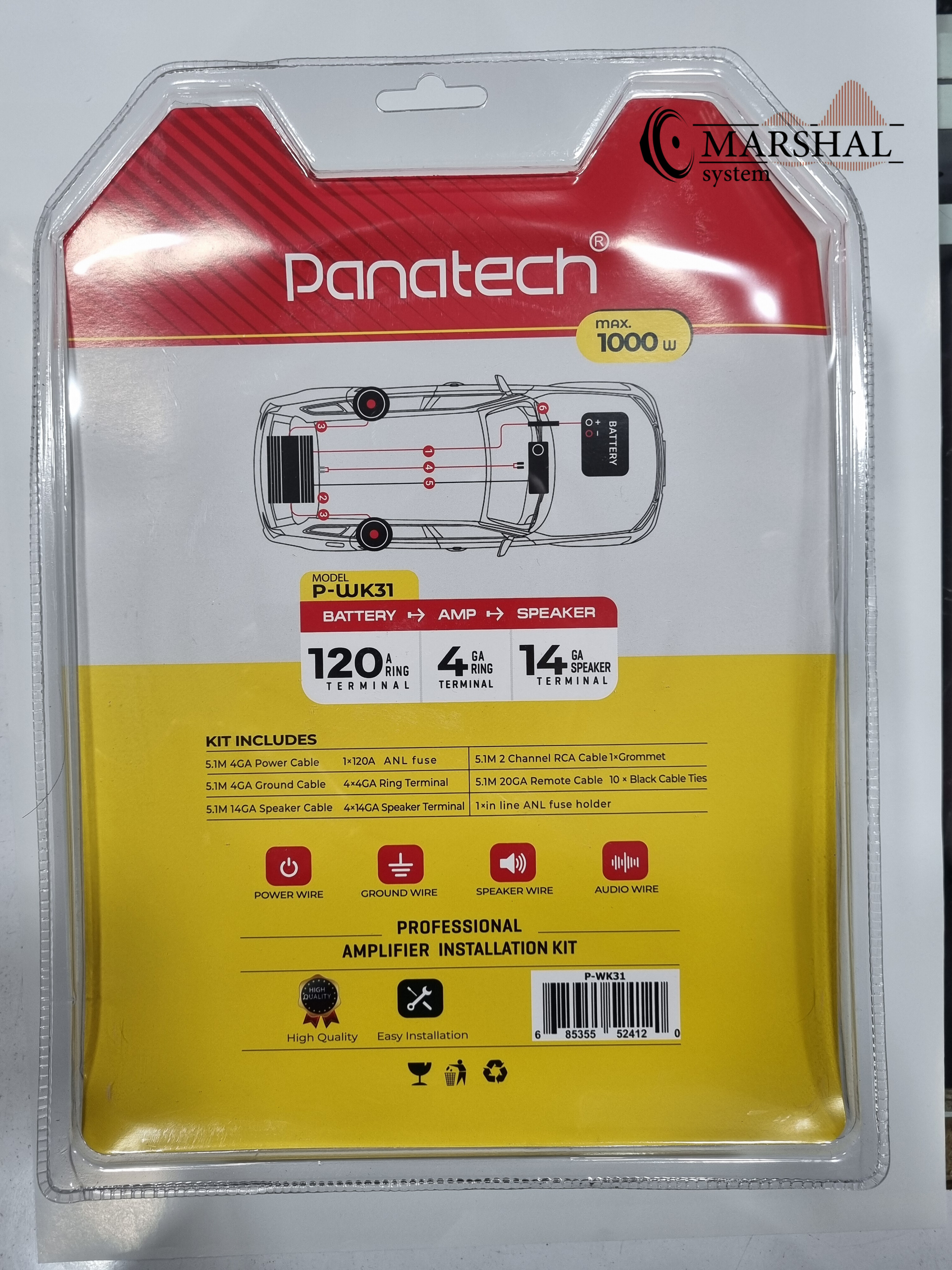 پک سیم کشی سیستم صوتی خودرو Panatech مدل P-WK31 پک مجموعه کامل و حرفهای برای نصب سیستم صوتی خودرو با توان 1000 وات و 4 گیج است.