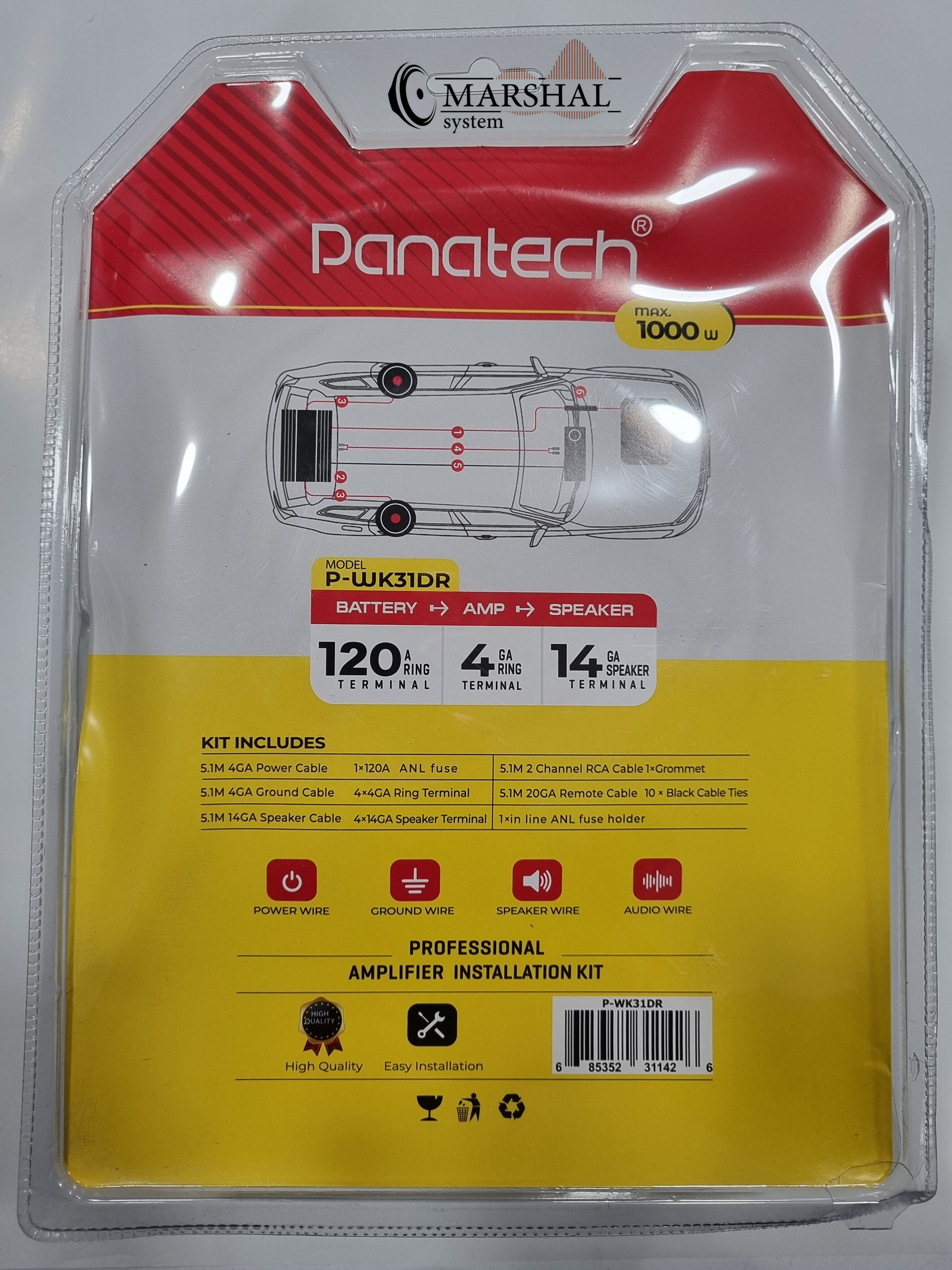 پک سیم کشی سیستم صوتی خودرو Panatech مدل P-WK31DR پک مجموعه کامل و حرفهای برای نصب سیستم صوتی خودرو با توان 1000 وات و 4 گیج است.
